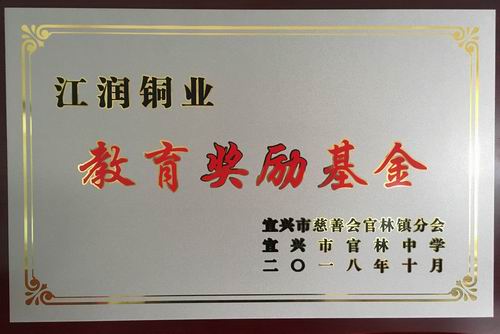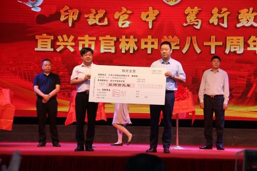 宜興市官林中學(xué)80周年校慶活動即日舉行,官林中學(xué)4只冠名基金揭牌儀式同時舉行。江潤銅業(yè)總經(jīng)理駱偉棟參加了此次盛會,向母校捐贈200萬元設(shè)立教育獎勵基金。江潤銅業(yè)與三川投資、永友糧油、江南電纜一起凝聚力量,致力推動教育事業(yè)發(fā)展。